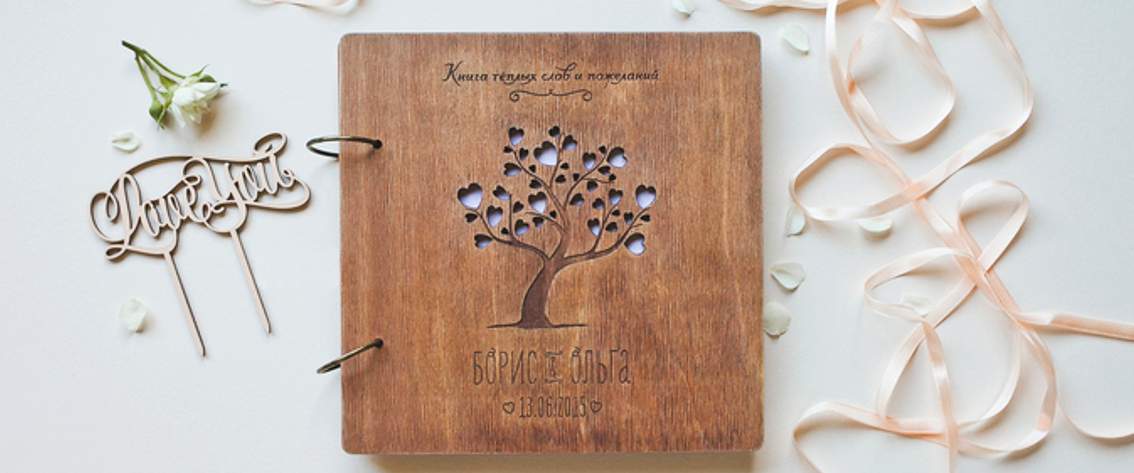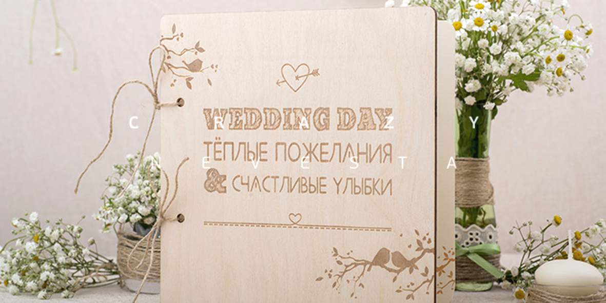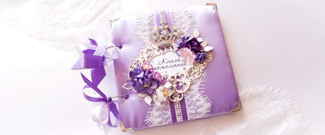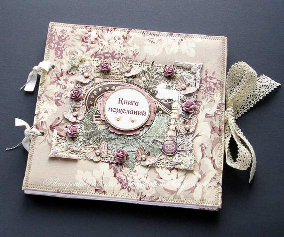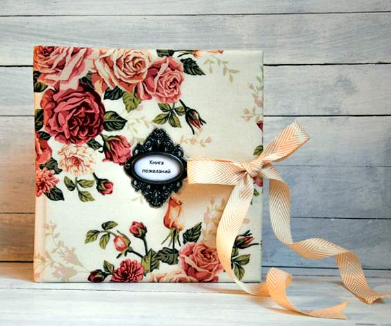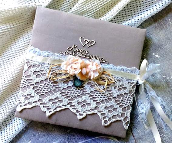 3. Гостевая книга или альбом для пожеланий – прекрасный способ запечатлеть все поздравления гостей вашей свадьбы. Каждый сможет выразить все самые теплые чувства и исренние пожелания. Свадебные альбомы для пожеланий изготавливаются вручну. Вы можете выбрать любой размер и дизайн. Неповтормый эффект может создать текстильная обложка с всевозможными элементами декора: лентами, кружевом, тканью и т.д.
