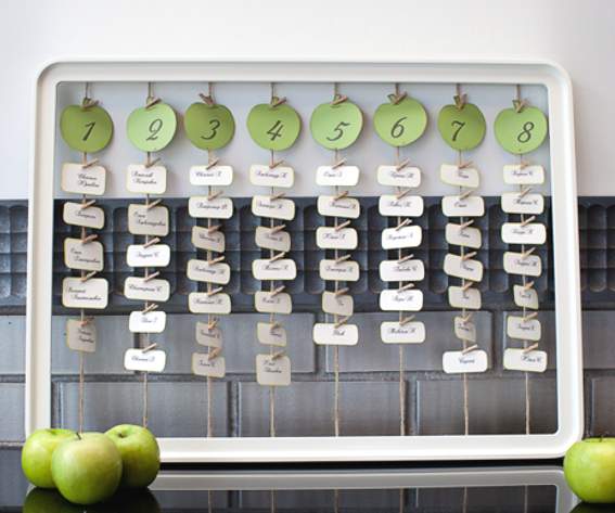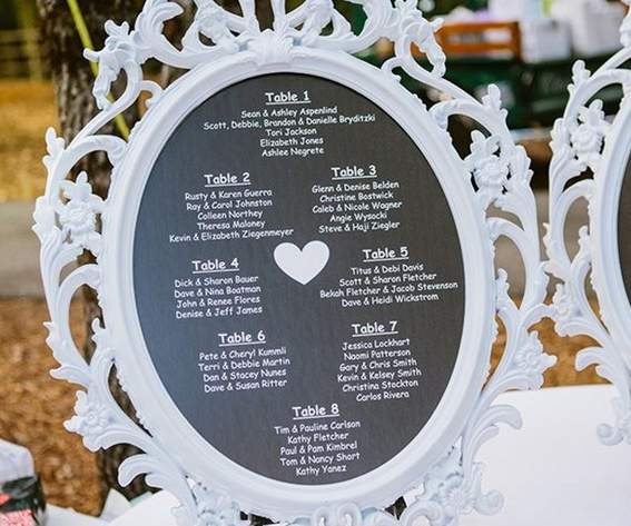 План рассадки гостей может быть представлен не только в классическом варианте раммы, но и в достаточно орригинальном исполнении. Например, в виде гирлянды, деревянной стойки или доски и даже зеркала.